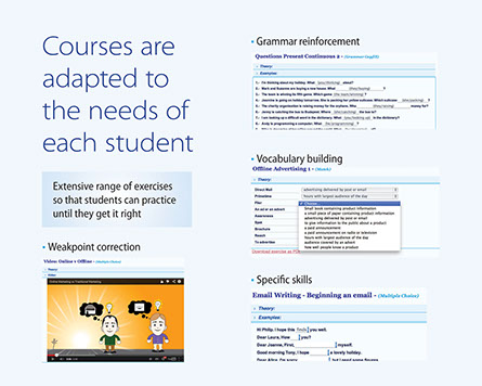 On-line courses. A personalized and flexible program to allow students to practice and reinforce grammar, with individual attention from one of our specialized professors.